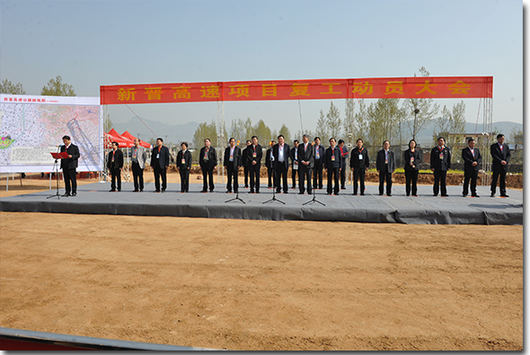 The morning of April 1st, the new high speed camp to block the Village Camp (provincial) held a groundbreaking ceremony in Henan Xinxiang. Xinxiang municipal Party committee secretary Shu Qing attended the mobilization meeting and announced the start of the work of the executive vice mayor presided over the mobilization of the general assembly, presided over by the general assembly, the mobilization of the general assembly of the people's Republic of China, Mr. Liu Shangjin. Xinxiang mayor Wang Xiaoping, Henan Provincial Department of transportation inspector Jiang Xiaoming, Xinxiang directly under the relevant departments, cities and counties along the highway construction group related to leadership, chairman of Hong Kong into standard, President of Qin holding as well as project construction units on behalf of a total of more than and 200 people participated in the construction mobilization meeting.
